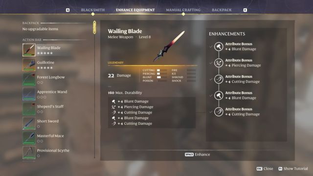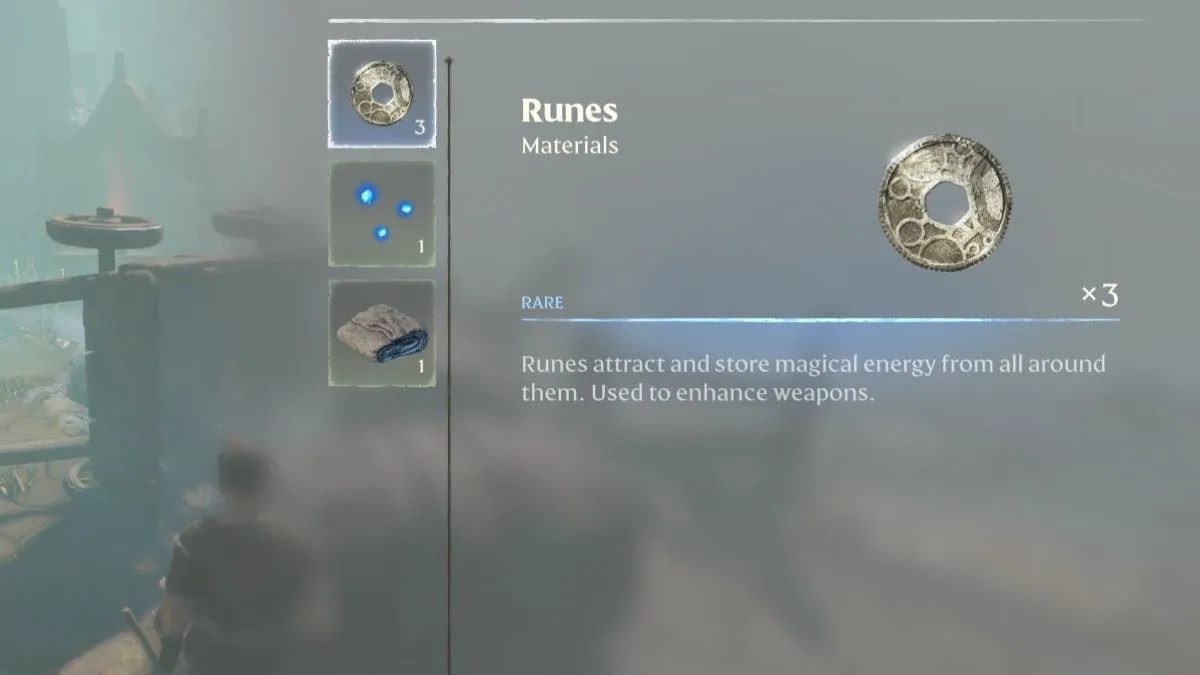 Then, at various NPCs like the blacksmith, you can use runes to upgrade your weapons. Upgrading is the real money sink here because it’s worth fully upgrading anything you use on a regular basis because you can repair items for free and use them indefinitely. A weapon’s rarity affects how many upgrades it has available, and you’re typically going to need between 50 and 200 runes to max something out.