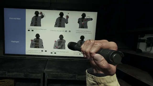 RE Village VR uses the tried and true “grab stuff intuitively from behind your back/your holster” control method: which still works like a charm (if it ain’t broke and doesn’t cost a ton more VR R&D money!). You’ll learn this through a brand new VR control tutorial, which only takes around 10 minutes, and gets the job done (and then some).